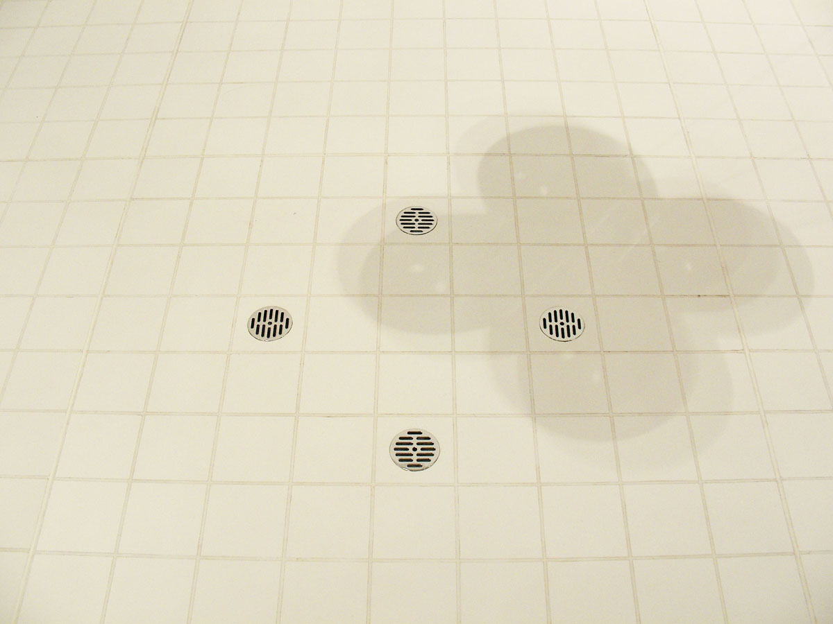 タイル張りの床に並ぶ水栓を抜くと聞こえてくるのは、水の音のようにも聞こえる、流れていったはずの中身のない内緒話の声。
